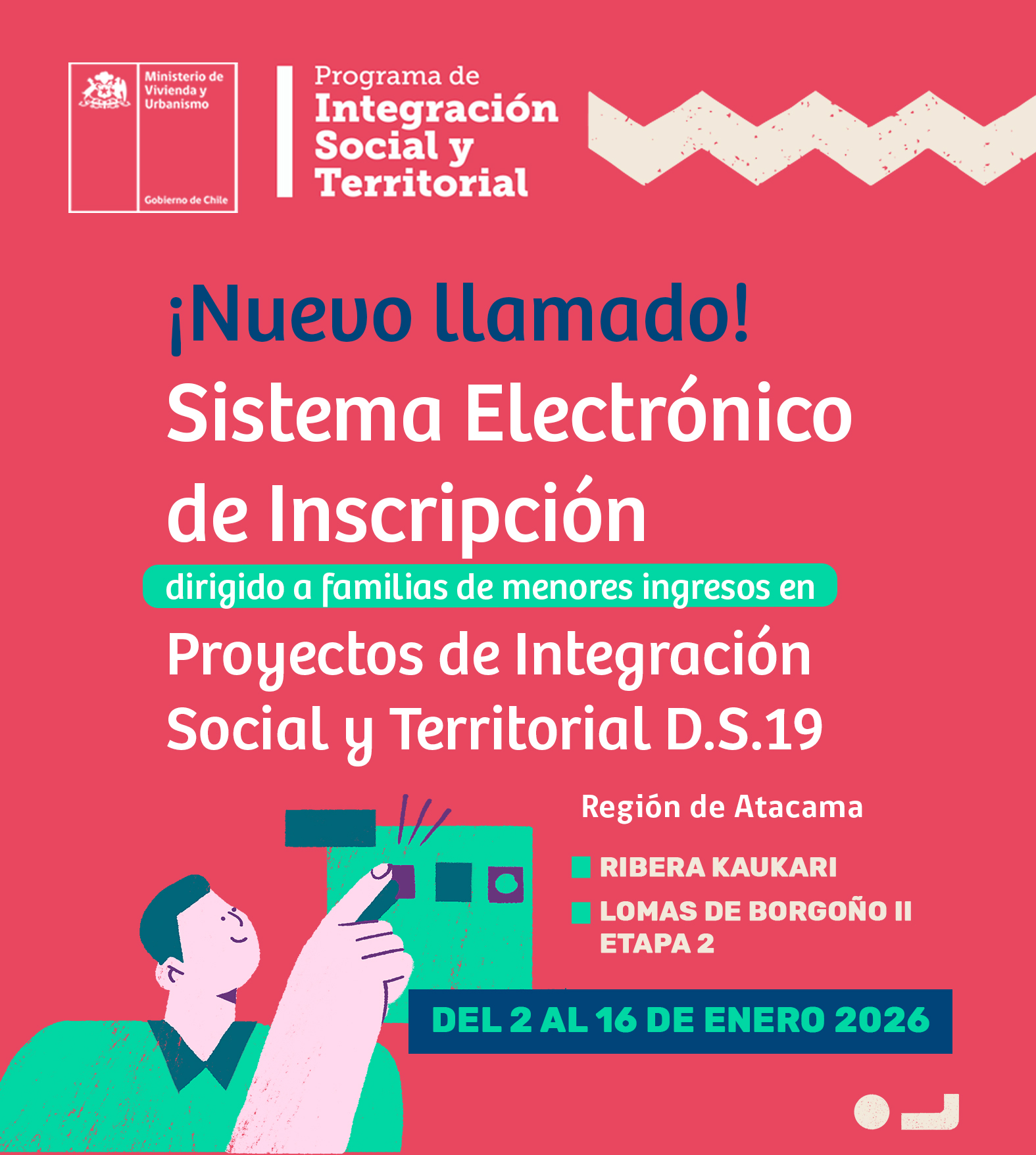 El nuevo Sistema de Incorporación de Familias de menores ingresos en Proyectos del Programa de Integración Social y Territorial D.S. N°19, permite a los beneficiarios y beneficiarias inscribirse en igualdad de condiciones y participar en un proceso claro, equitativo y transparente, con factores de priorización conocidos de antemano, donde se privilegia la equidad en el acceso a los inmuebles disponibles en cada proyecto habitacional.