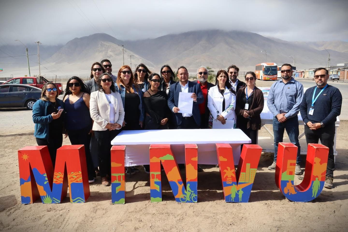 En la Avenida Raúl Barrionuevo esquina pasaje La Isla, sector Aeropuerto, comuna de Chañaral; se realizó el hito de firma del acta del terreno con el que el Programa de Mejoramiento de Viviendas y Barrios del Ministerio de Vivienda y Urbanismo; comenzará a construir el Centro Comunitario de Cuidados de la comuna, cuya inversión bordea los $315 millones (8.000 UF) y que formará parte del Sistema Nacional de Apoyos y Cuidados: Chile Cuida.