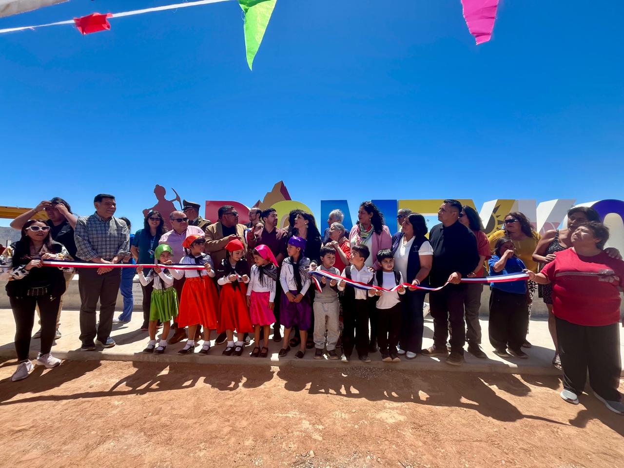 La comunidad de Domeyko celebró una verdadera fiesta luego de la inauguración de un llamativo espacio público ubicado en un lugar estratégico de la localidad y que considera letras volumétricas, áreas de paisajismo y un sombreadero que permitirán disfrutar de una vista privilegiada del paisaje, tanto a los mismos vecinos como a visitantes, transformándose en un nuevo atractivo turístico de esta zona minera.